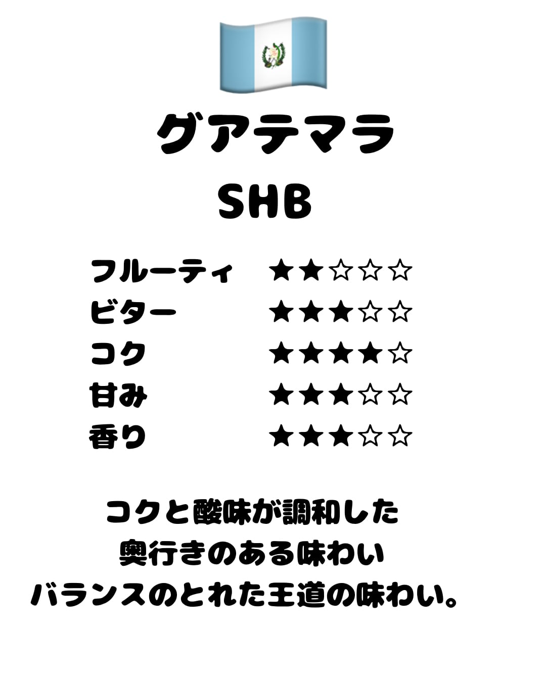 グアテマラ SHBは、フルーティーな酸味と絶妙な甘さが特徴の特選コーヒーです。
